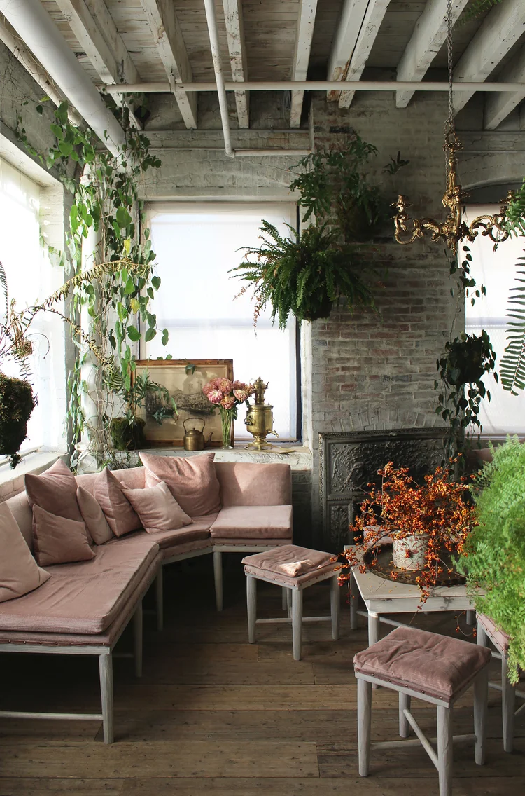 Upon entering, visitors are greeted by the aromatic scent of tea, followed by an elegant vintage interior and a wall of gorgeous gold canisters. Filled with whitewashed wood, upholstery covered in dusty pink velvet and greens growing in every corner, the sitting room is a vivid dream of how I imagined my perfect studio to be. Tints of orange and gold flickers in the corner of your eye, its the candle light and reflections of the silver and gold canisters — an impossibly beautiful color palette. Pity that they do not serve tea/ beverage in this great ambiance. Instead, the space provides me with a cup full of enchantment; Bellocq is a tea studio that I'd want to linger in for as long as possible.